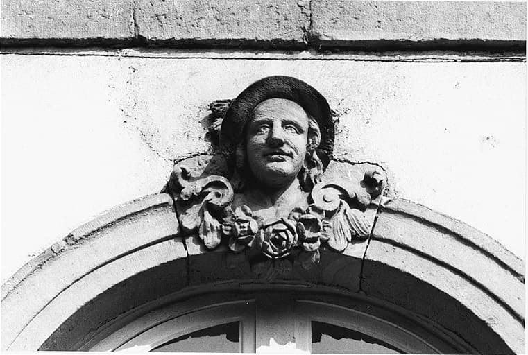 Elévation sud, avant-corps central, premier étage, clé de cintre de la fenêtre centrale.