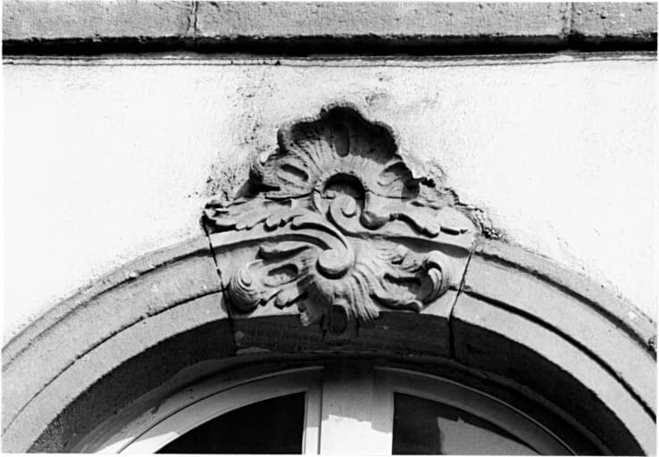Elévation sud, avant-corps central, premier étage, clé de cintre de la fenêtre gauche.