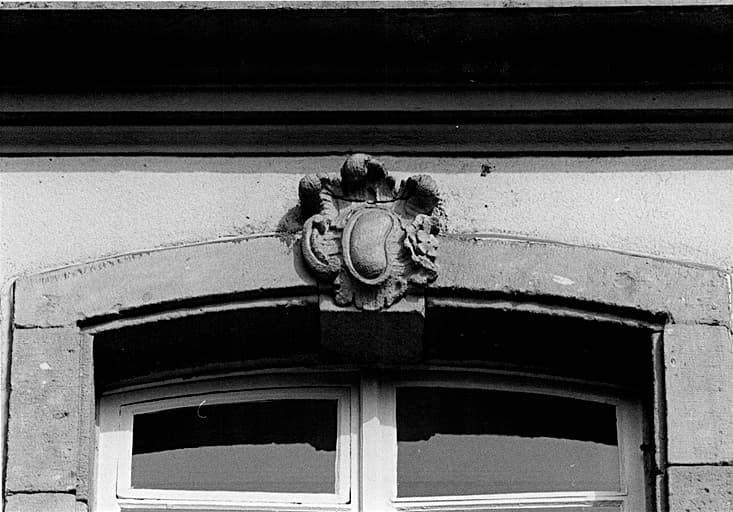 Elévation sud, avant-corps central, deuxième étage, clé de cintre de la fenêtre droite.