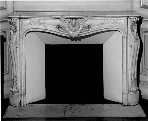 Cheminée en marbre blanc dans le petit salon au premier étage.