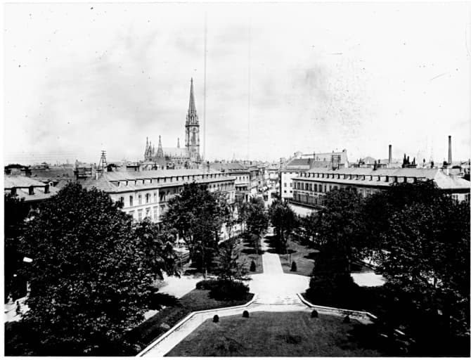 Vue ancienne du jardin du nouveau quartier.