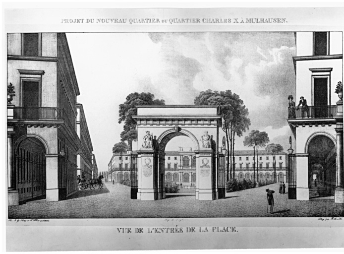 Projet du nouveau quartier à Mulhouse, vue de l'entrée de la place.