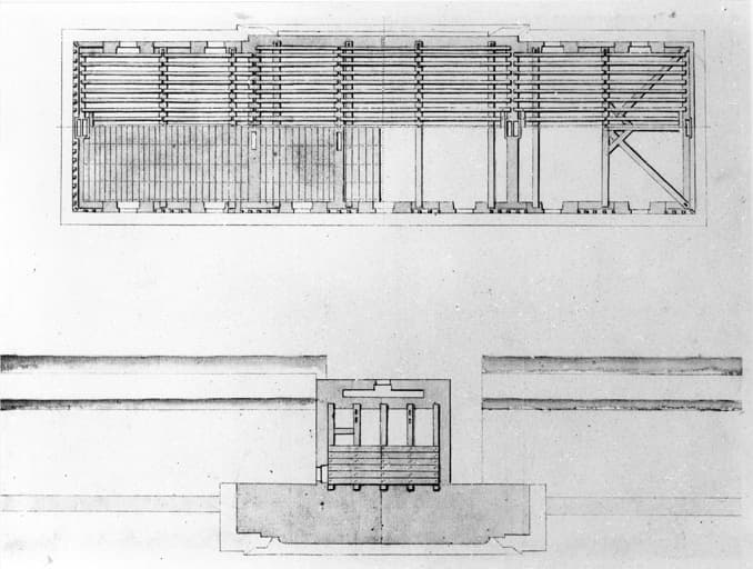 Porte : plan et charpente.