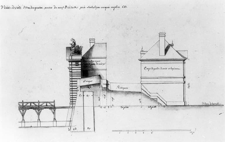 Vue de côté d'une des quatre portes du neuf Brisach pris sur la ligne marquée au plan CD.