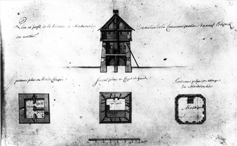 Plan et profil de la Redoute à Machicoulis du milieu de la Communication du neuf Brisach au mortier.