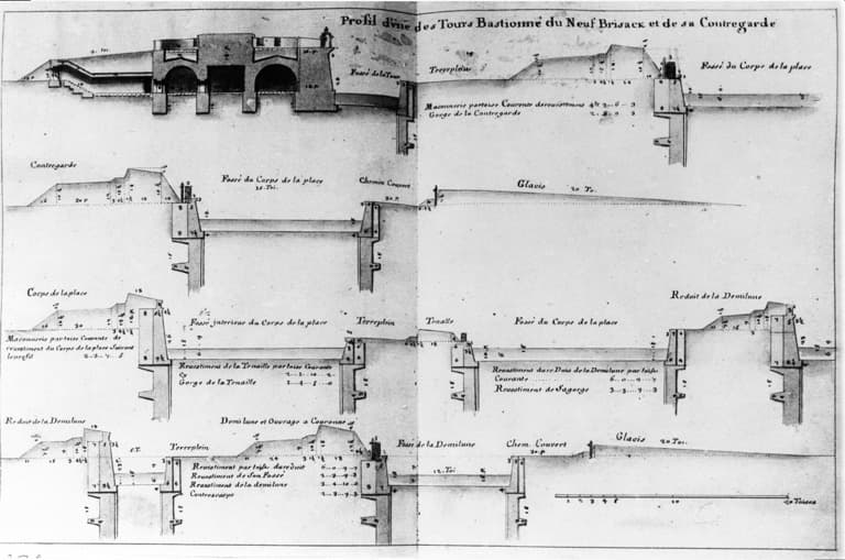 Profil d'une des Tours Bastionné du Neuf-Brisack et de sa Contregarde.