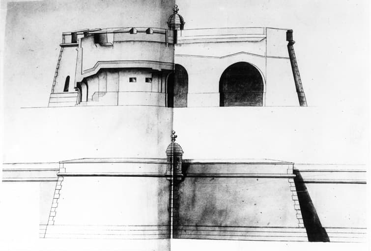 Coupe transversale et élévation.