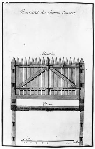 Barrières du chemin couvert / Elévation / Plan.