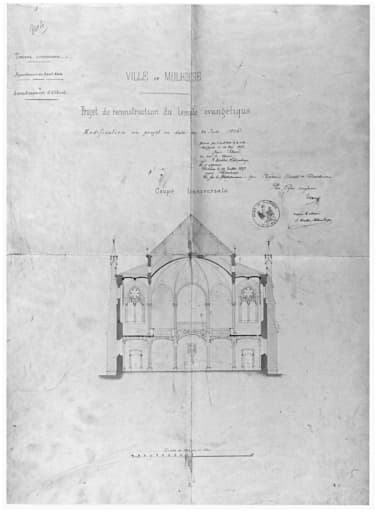 Reconstruction du temple évangélique. Modification du projet en date du 24 juin 1856. Coupe transversale.