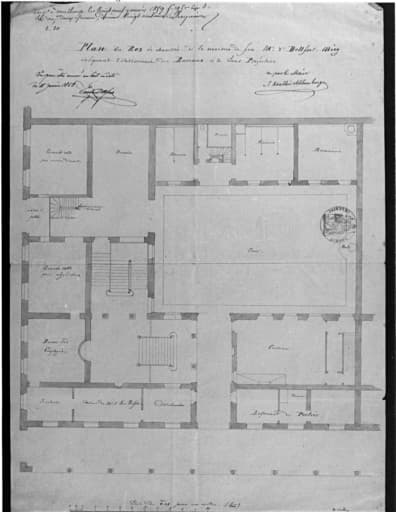 Plan du rez-de-chaussée indiquant l'établissement des bureaux de la sous-préfecture.