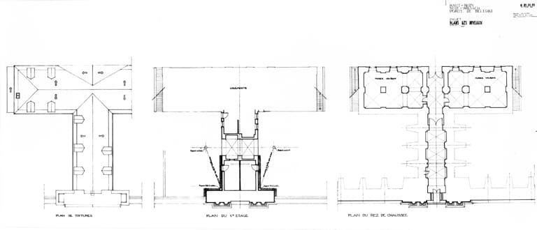 Plans du rez-de-chaussée, du 1er étage et plan des toitures (1981).