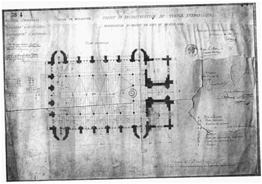 Reconstruction du temple évangélique. Modification du projet en date du 24 juin 1856. Plan détaillé.