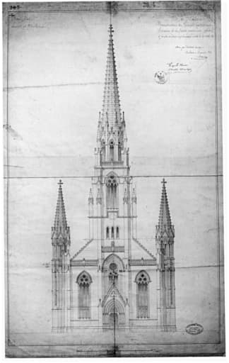 Reconstruction du temple protestant. Elévation de la façade postérieure (clocher).