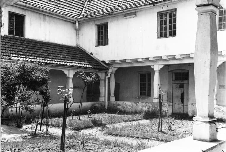 Hôpital militaire installé dans l'ancien couvent des Capucins ; cloître de la Chapelle de l'Hôpital avant 1939.