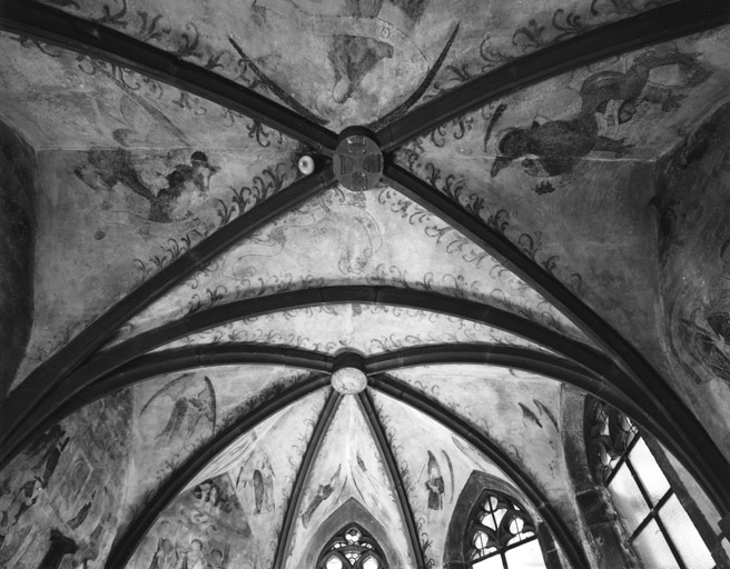 POP | Plateforme ouverte du patrimoinePeinture murale : Agneau mystique, Tétramorphe, les instruments de la Passion, ange, Jugement Dernier, les apôtres, moulin mystique