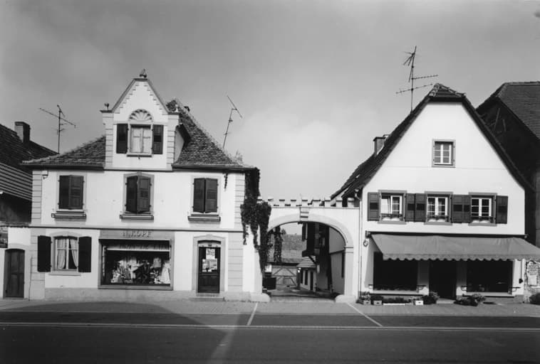 Ferme : Barons-de-Fleckenstein (rue des) 10, 12. Vue d'ensemble avec porte charretière.