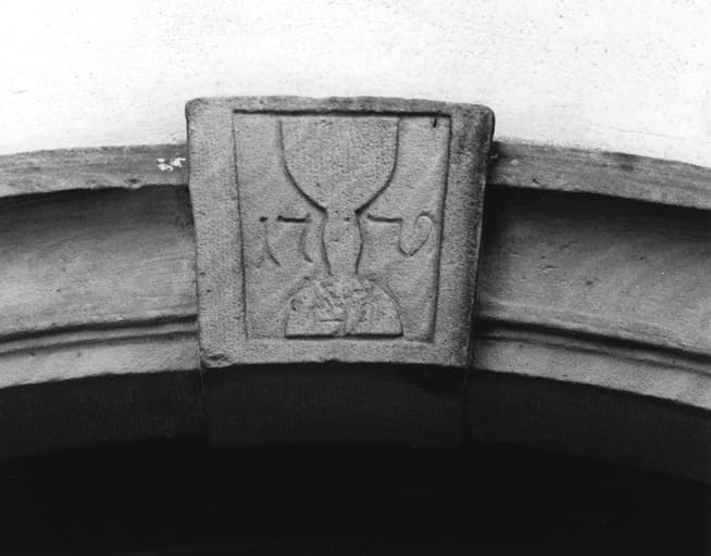 Date 1779 et calice ornant la clef de cintre de la porte.