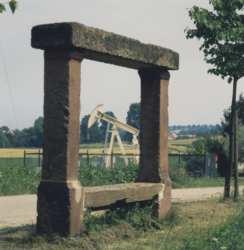 Vue d'ensemble avec en arrière plan un balancier de pétrole.