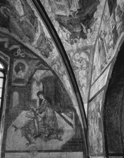 Vue de l'angle sud-ouest du choeur. Cinquième scène de la vie de sainte Marguerite : Marguerite maîtrise le diable en l'attrapant par les cornes.