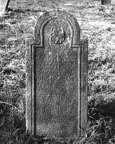 Vue d'ensemble de la stèle funéraire de Faïgel, épouse de Michaël Levi, décédée en 1749.
