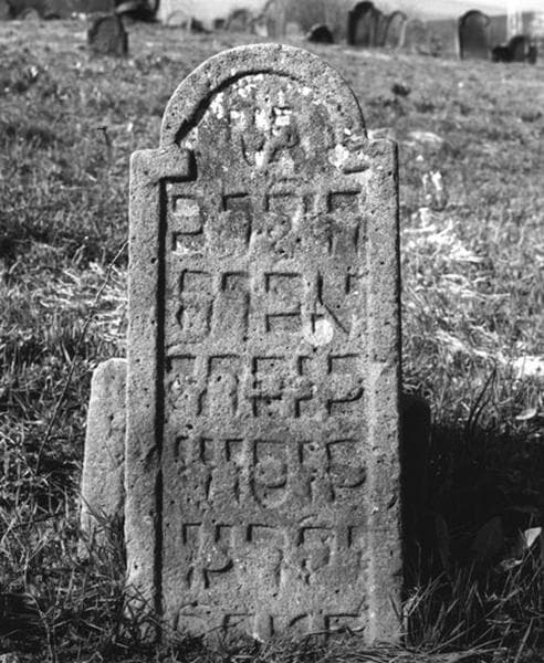 Vue d'ensemble de la stèle funéraire de l'enfant Abraham, fils de Naphtali, de Bouxwiller.
