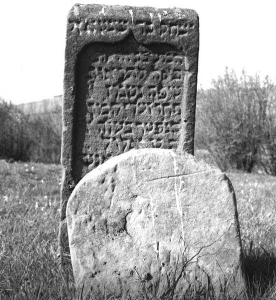 Vue d'ensemble de la stèle funéraire d'Isaac dit Seligman, fils de Samuel, décédé en 1636.