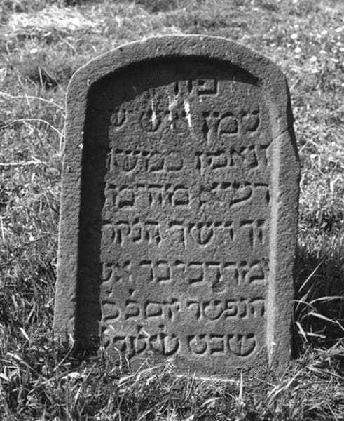 Vue d'ensemble de la stèle funéraire de Mardochée, fils de Asher, décédé en 1614.
