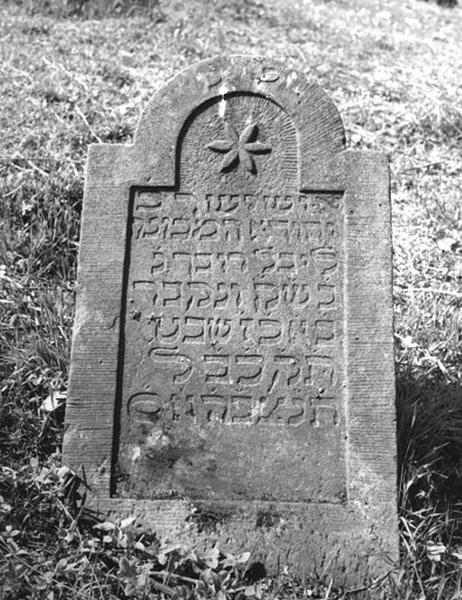 Vue d'ensemble de la stèle funéraire de Judel Juda dit Leibel Robach (?), décédé en 1762.