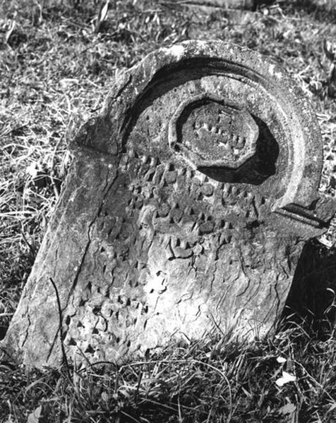 Vue d'ensemble d'une stèle funéraire. Stèle altérée.