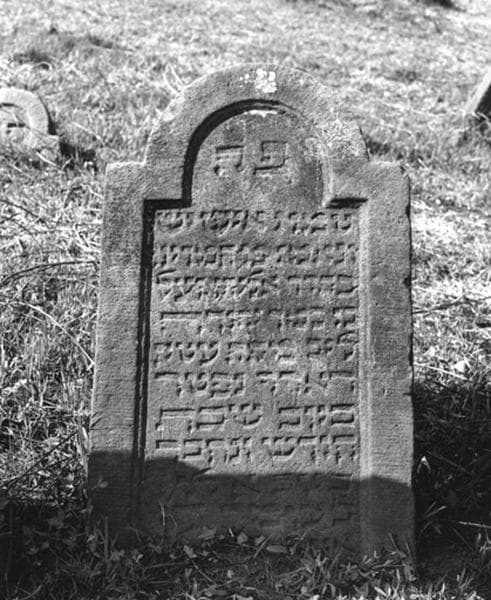 Vue d'ensemble de la stèle funéraire d'Elie, fils de Juda Loeb d'Ettendorf, préposé de la Province. Date cachée.