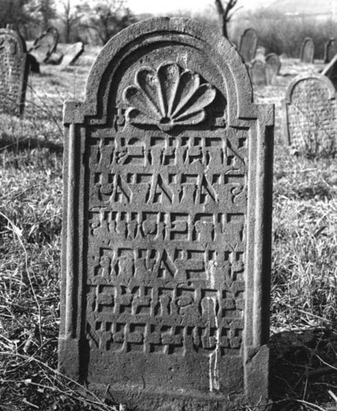Vue d'ensemble de la stèle funéraire de Léa, épouse de Todros, de Bouxwiller, décédée en 1738.