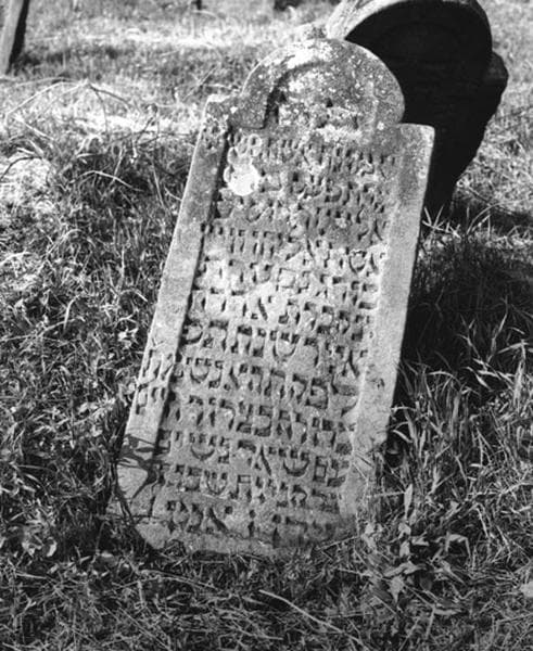 Vue d'ensemble de la stèle funéraire de Pess, fille d'Eliezer de Rosheim (?), épouse d'Elyahu de Weinburg, décédée en 1720.