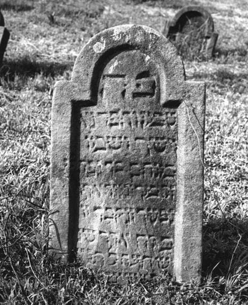 Vue d'ensemble de la stèle funéraire de Mena'hem, fils de Naphtali Ringendorf, décédé en 1718.