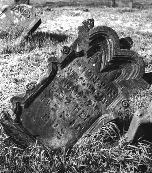Vue d'ensemble de la stèle funéraire de Jacob Weyl d'Ingwiller, décédé en 1728.