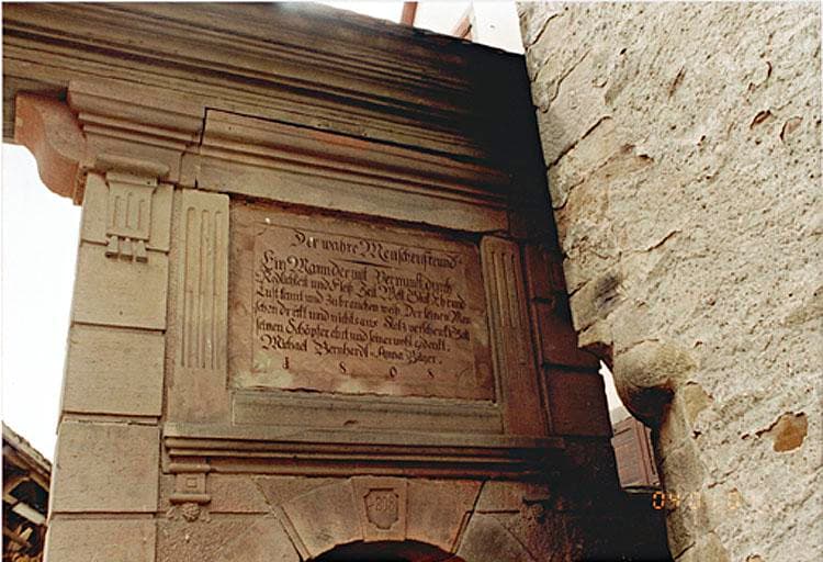 53, rue Principale. Vue de l'inscription au-dessus du portail.