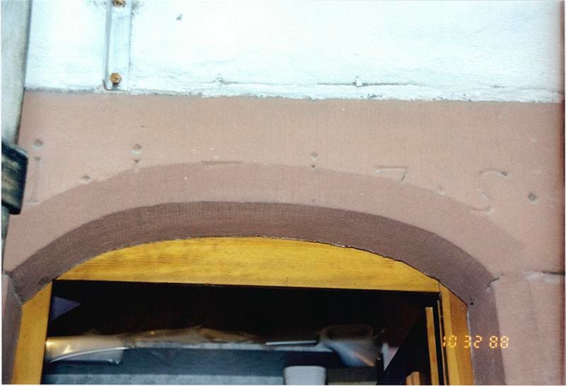 Corps de logis, côté cour. Détail de la porte datée 1717 avec initiales I S (de Iohann Schilling).
