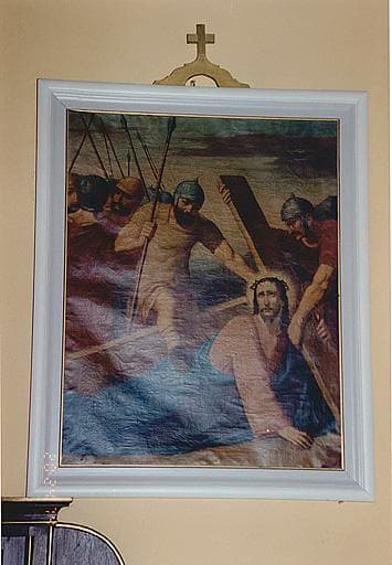 Vue du chemin de croix : station 7, Jésus tombe pour la seconde fois.
