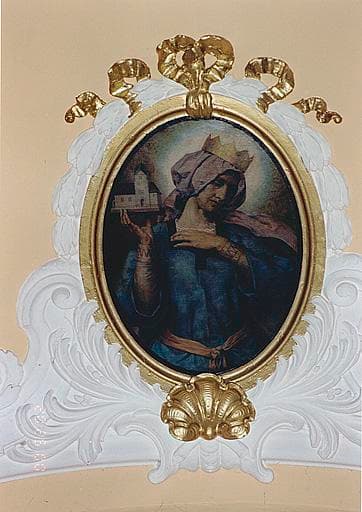 Vue d'une peinture monumentale (voûte de la nef) : médaillon peint, sainte Adélaïde.