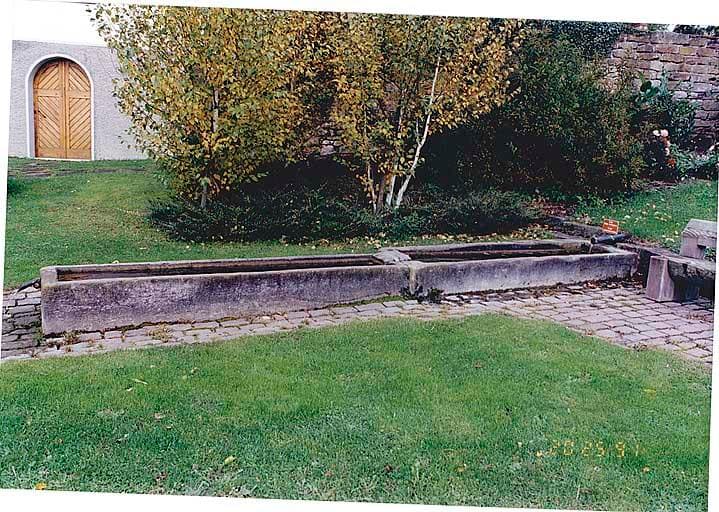 Oberdorf, vue de l'auge-abreuvoir (C), rue Principale.