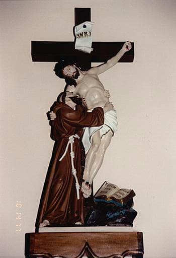 Vue du groupe sculpté de saint François et le Christ.