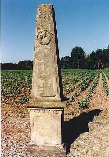 Vue du monument commémoratif des lieutenants Ludwig Haren et Philipp Reichsgraf von Wolkenstein-Rodenegg, décédés en 1870. Elevé par Bruner frères, 4e quart du 19e siècle.