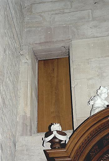 Nef, mur est, au nord : porte conduisant à la coursière de la tour de croisée.