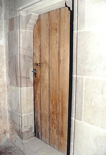 Tour de croisée, bras sud, porte vers la tourelle d'escalier montant à la coursière du niveau supérieur.