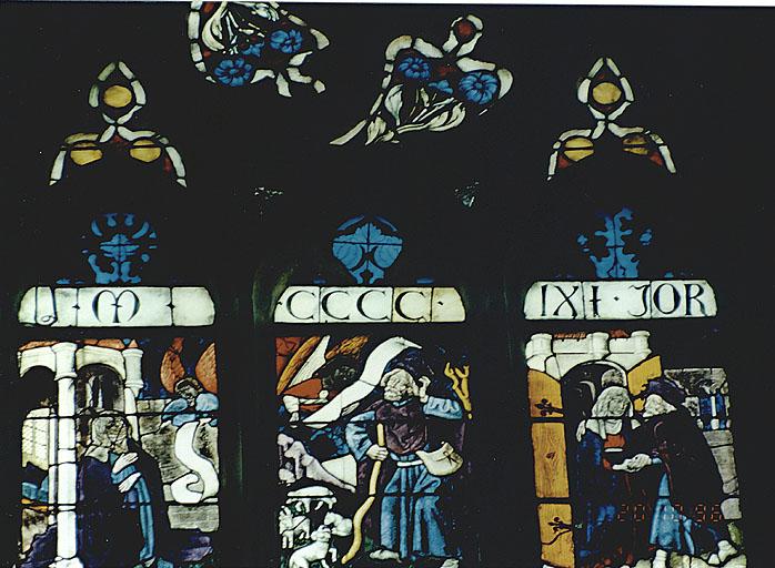 Choeur, baie 1. Partie supérieure de la verrière, portant la date MCCCCLXI.