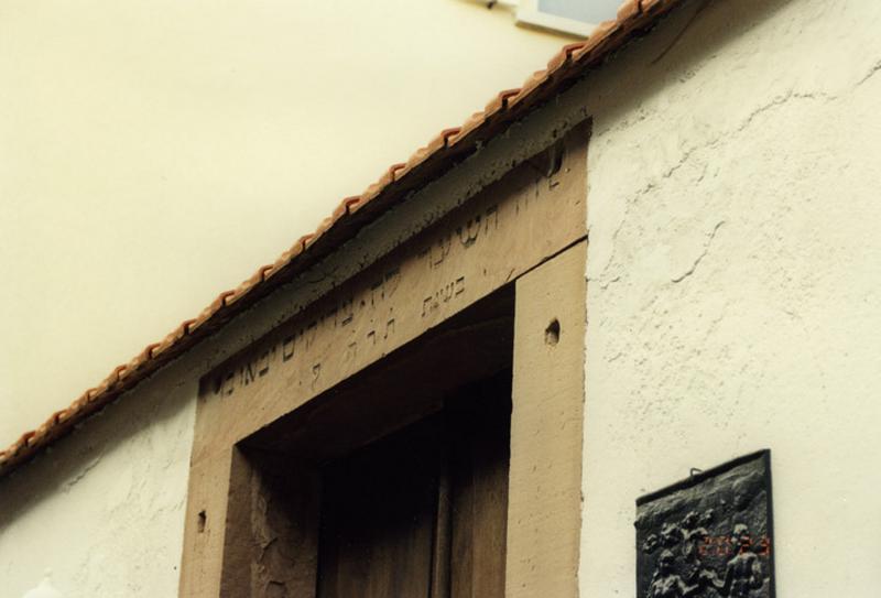 Synagogue, linteau de la porte avec inscription hébraïque.