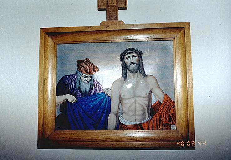 Vue d'ensemble de la dixième station : Jésus est dépouillé de ses vêtements.