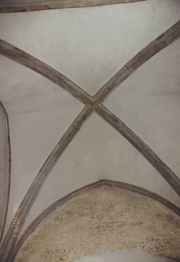 Vue de la croisée d'ogives du rez-de-chaussée de la tour.