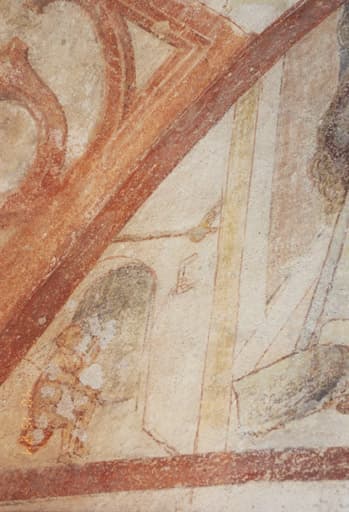 Vue partielle du mur ouest. Sixième scène de la vie de sainte Marguerite : détail un chien (?) sort de sa niche.