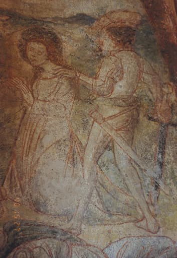 Vue partielle du mur ouest. Neuvième scène de la vie de sainte Marguerite : Marguerite saisit à l'épaule par le bourreau.