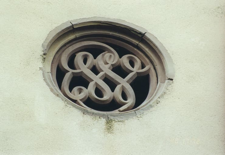 Détail. L'oculus au monogramme de Wihr-en-Plaine, 1851.
